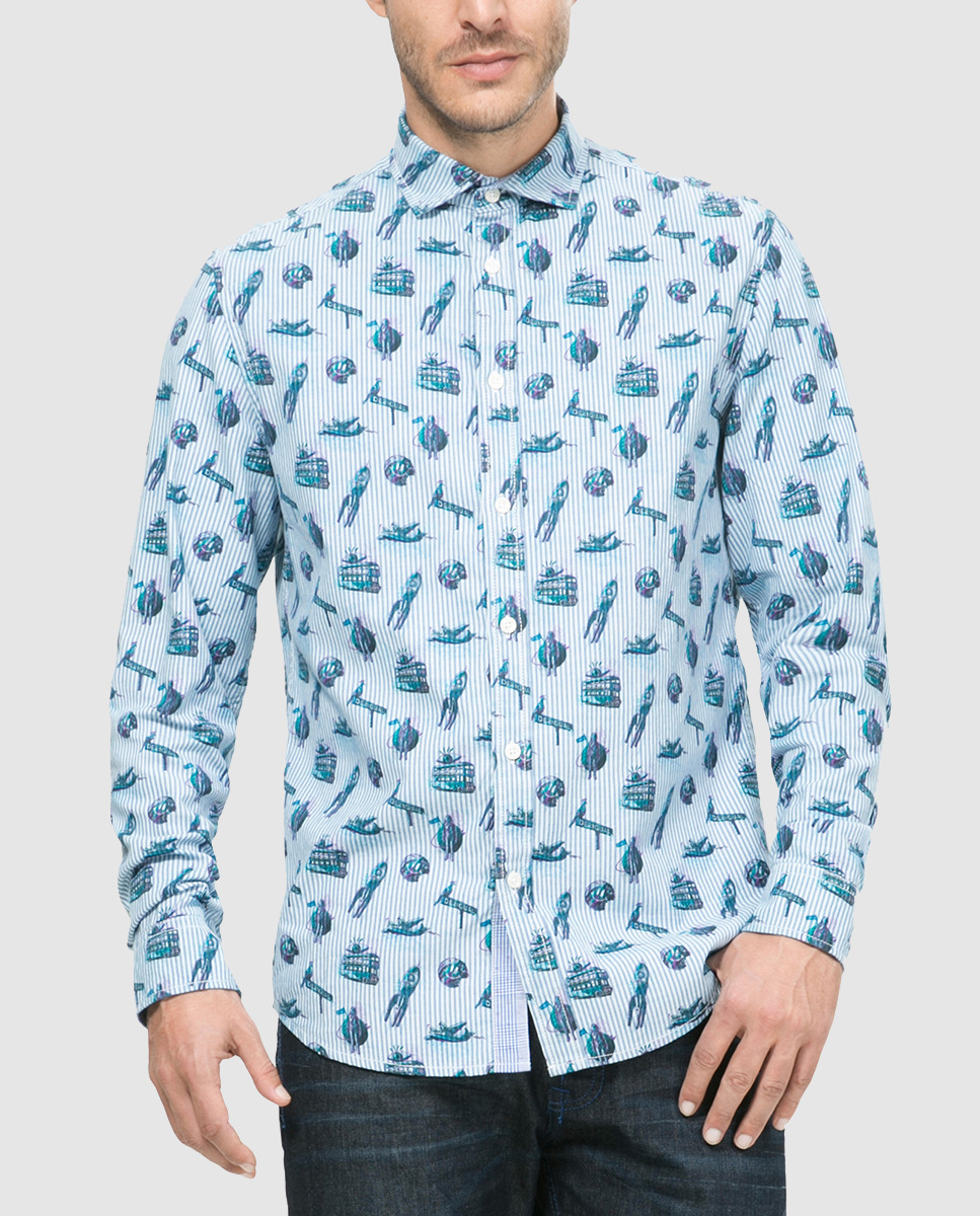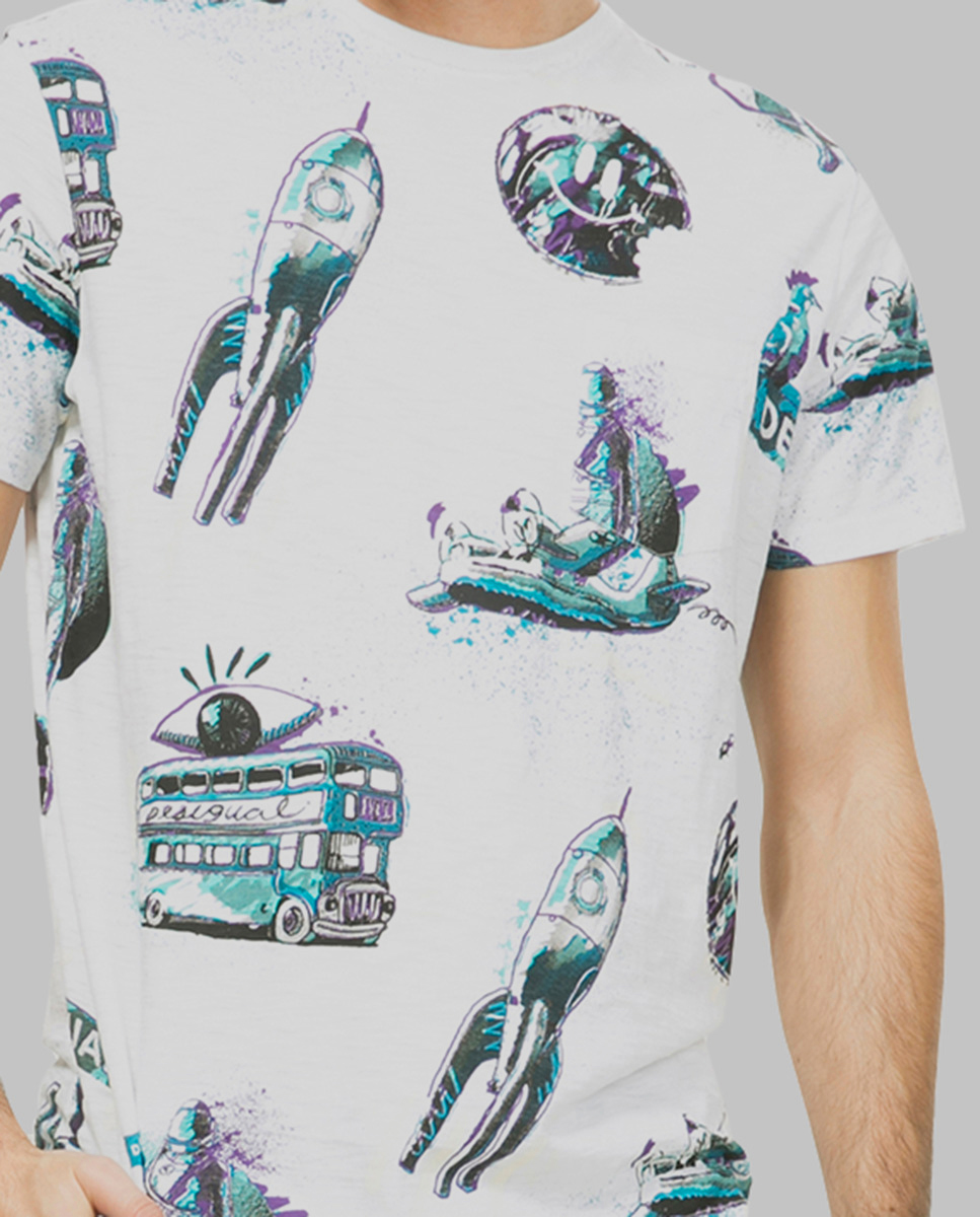 I work together with Steven Harrington and his team in London to make a men’s collection for the Desigual clothing brand.